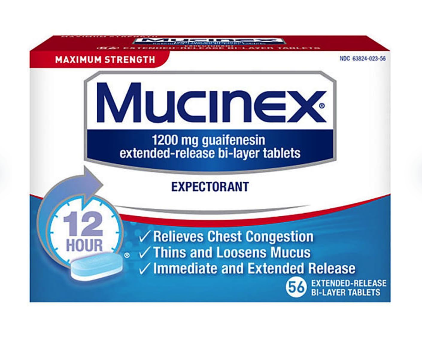 Mucinex 12 Hour Maximum Strength Expectorant is a powerful over-the-counter chest congestion relief formula designed to help you breathe easier by thinning and loosening stubborn mucus buildup in your airways. Each extended-release bi-layer tablet contains 1200mg of Guaifenesin, a clinically proven expectorant that works in two phases: an immediate-release layer for fast relief and an extended-release layer for long-lasting effectiveness. Unlike ordinary expectorants, Mucinex delivers relief for up to 12 hours with just one tablet, making it a convenient solution for managing chest congestion without frequent dosing.This doctor-recommended formula helps clear bronchial passageways, making coughs more productive while providing non-drowsy relief so you can continue your day without interruptions. Whether you're dealing with congestion from a cold, flu, or seasonal allergies, Mucinex works to break up mucus, allowing you to breathe more freely. Designed for adults and children over 12, these easy-to-swallow tablets provide consistent, reliable relief.With a 56-count supply in this value 2-pack, you can always have Mucinex on hand to combat chest congestion whenever it strikes. Whether you're preparing for cold and flu season or looking for a dependable expectorant, Mucinex 12 Hour Maximum Strength offers the long-lasting relief you need to stay comfortable and breathe easier.
