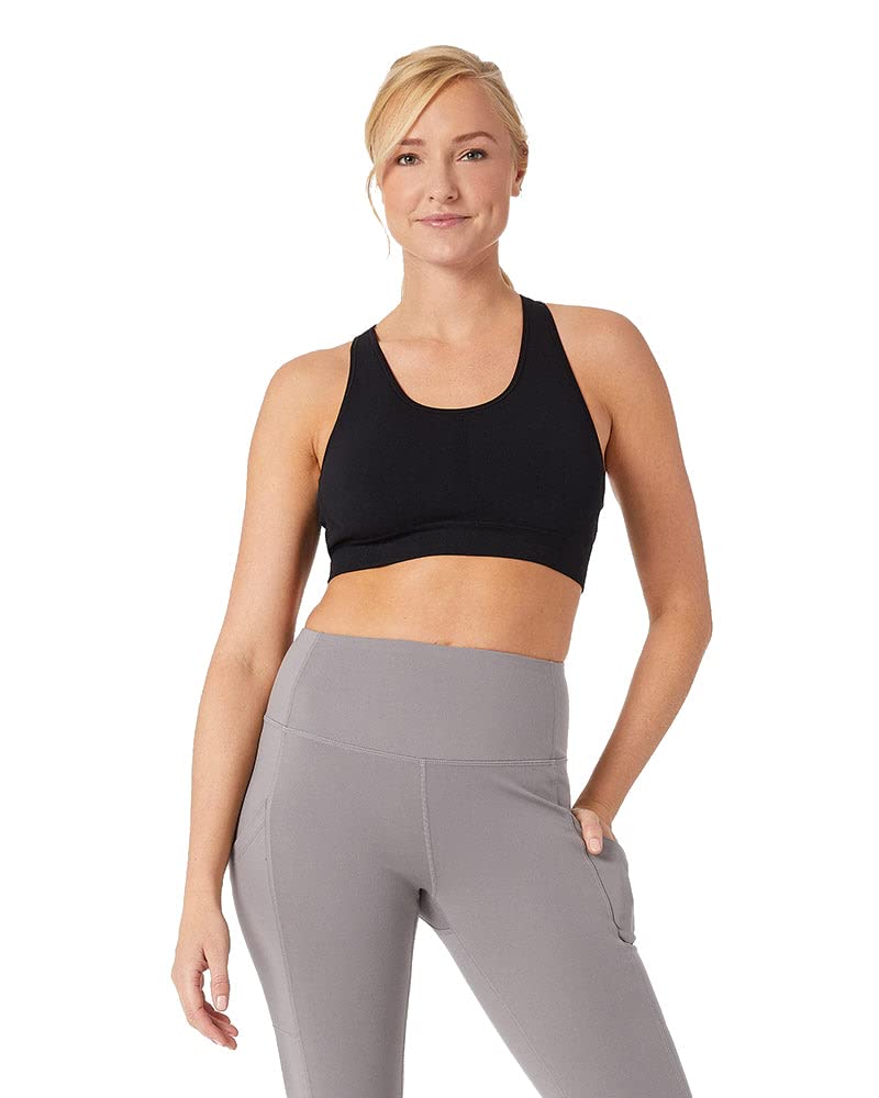 32 DEGREEES Women’s Seamless Racerback Sports Bra| Moderate Support | Full Coverage | Removable Cups, Black, X-Large