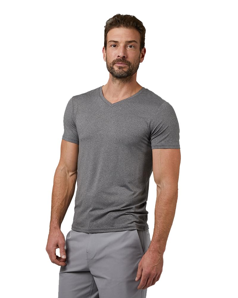 32 Degrees Mens Cool Quick Dry Active Lounge Basic Vneck T-Shirt, Grey Heather, XLarge