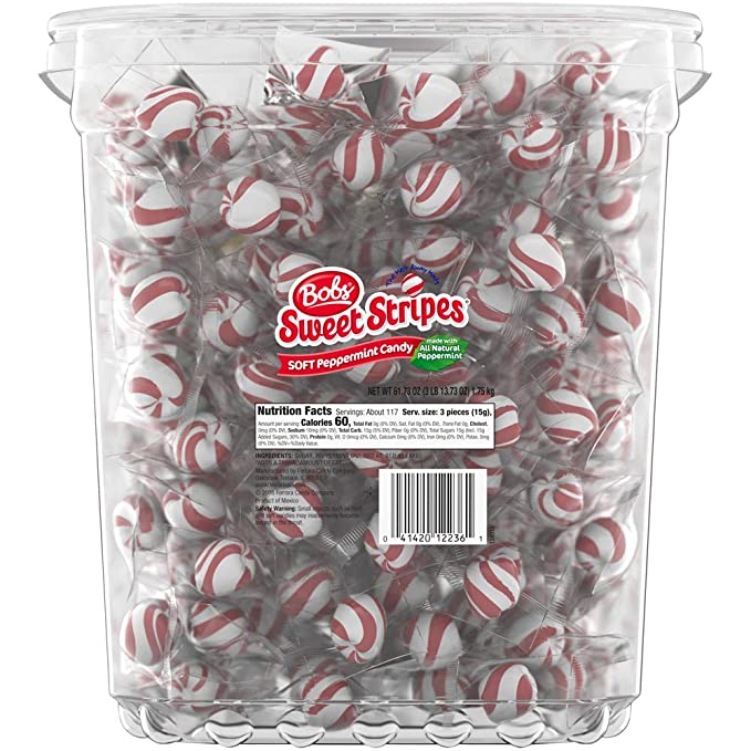 - Classic mint candy: Bob's sweet stripes are a smoother, softer way to enjoy a mint; Refresh your day with the deliciously sweet peppermint flavor in every piece, with only 60 calories per serving