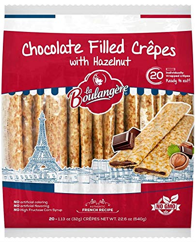 La Boulangere Chocolate Hazelnut Crepes, Individually Wrapped, Non GMO, Free From Artificial Flavors & Colors, 20-Count 2 Packs