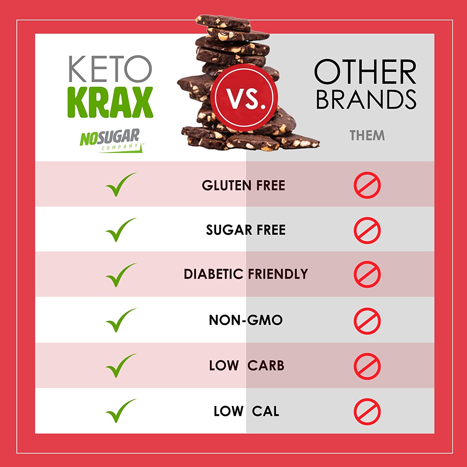 - SOMETHING FOR ALL. Try our other incredible Keto Krax flavors as this dark chocolate keto bark sell out fast. No Sugar Company Keto snacks are safe for Keto and Low-carb diets and those with diabetes.