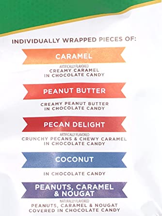 | Flavor | Chocolate: Caramel, Peanut Butter, Pecan, Coconut, Peanut/Caramel/Nougat |