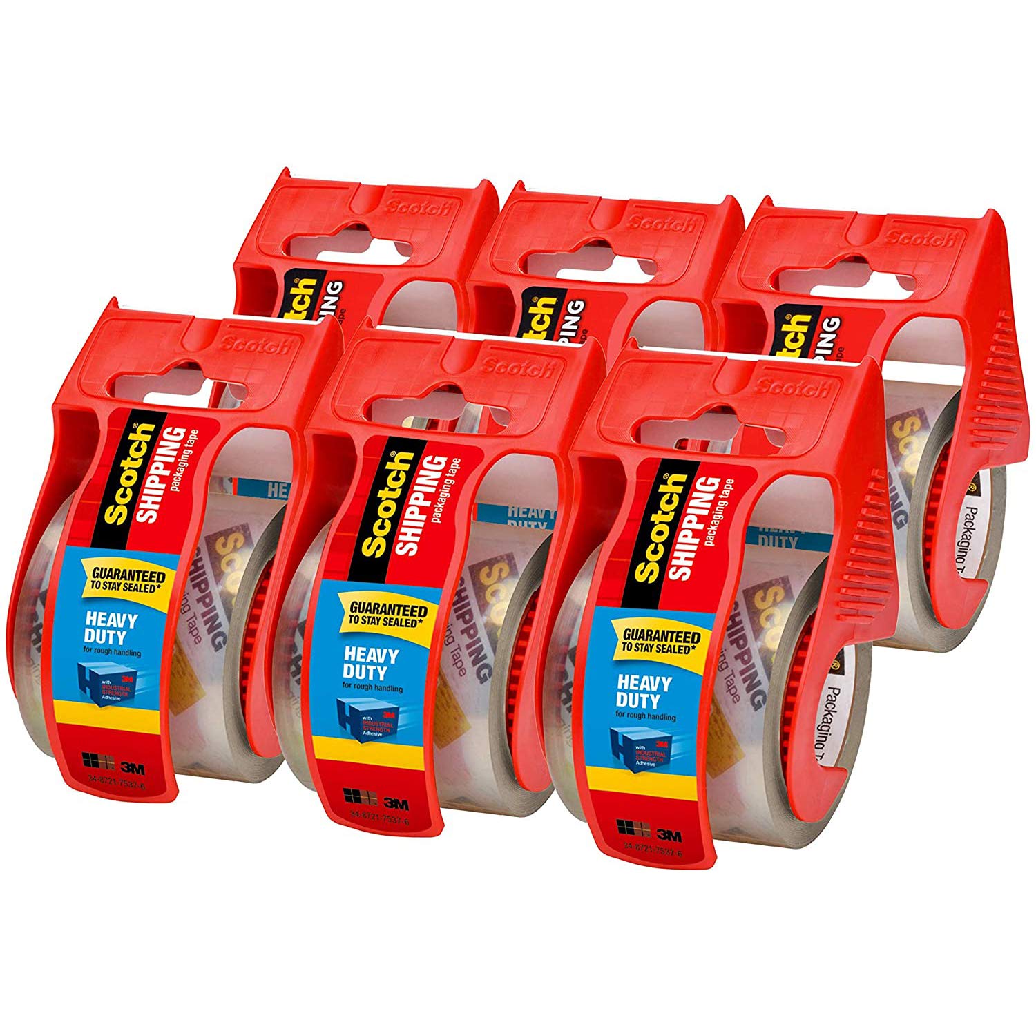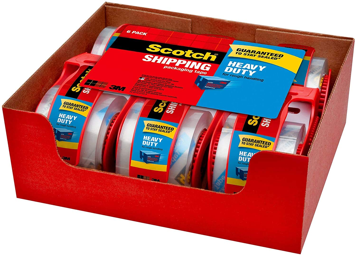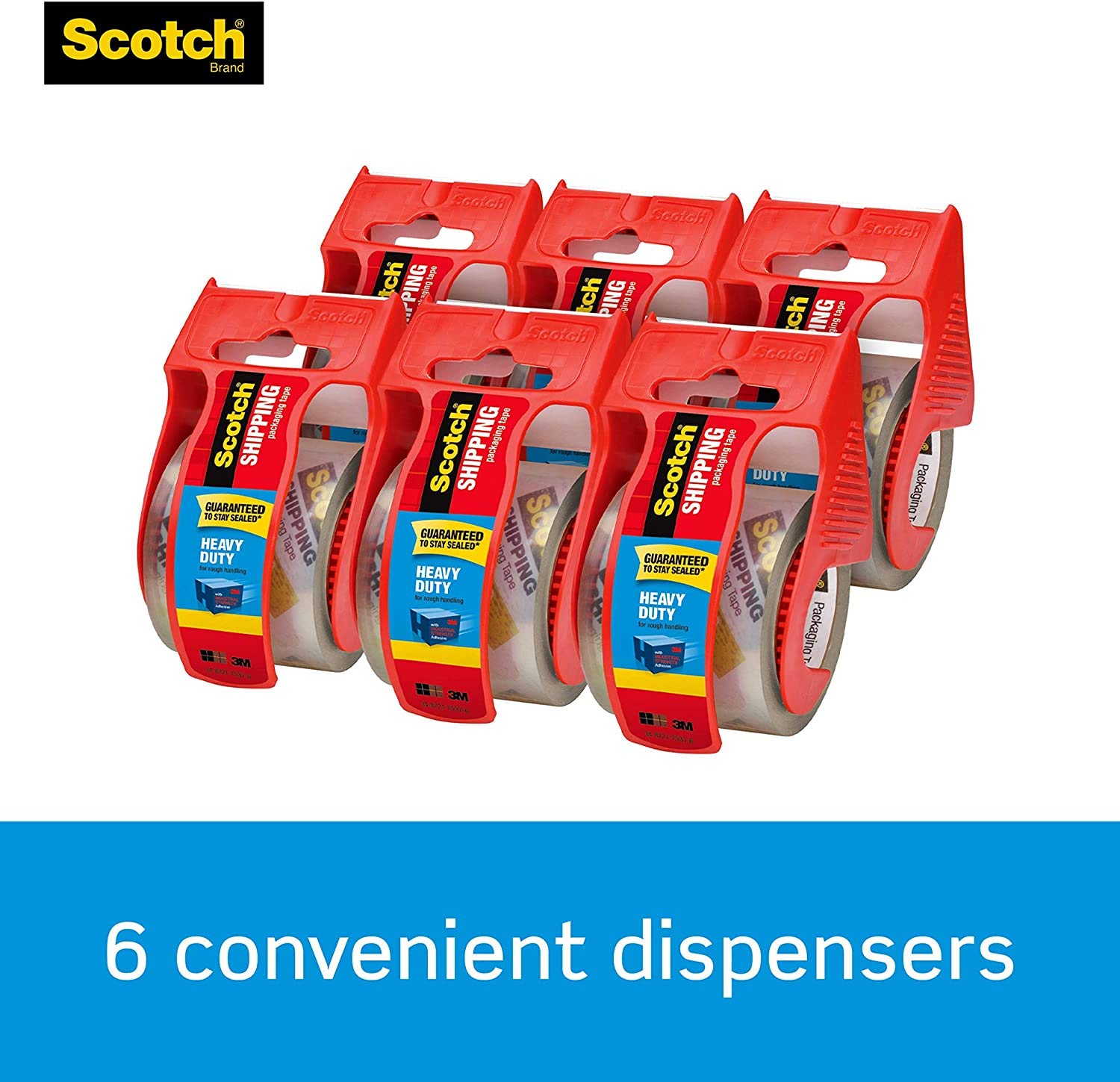Scotch Heavy Duty Shipping Packaging Tape with Dispenser, Clear, 1.88 in x 22.2 yd (1.5 in Core), 6 Rolls – Strong Adhesive Tape for Moving, Packing & Mailing, One-Strip Seal, 3 mil Thick